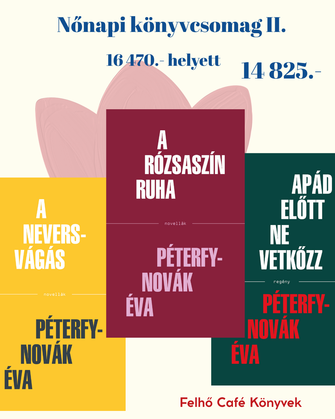 – Péterfy-Novák Éva: A rózsaszín ruha – Az Egyasszony szerzőjének novellái a körülöttünk lévő világról szólnak: nőkről és férfiakról, anyákról és lányaikról, feleségekről és férjekről, gyerekekről és felnőttekről, gyerekkorról,